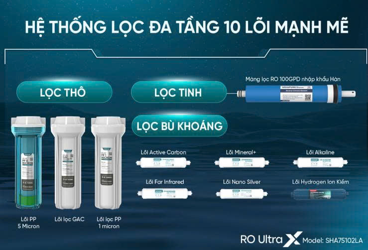 Máy lọc nước Sunhouse SHA75102LA ion kiềm Hydrogen UltraX