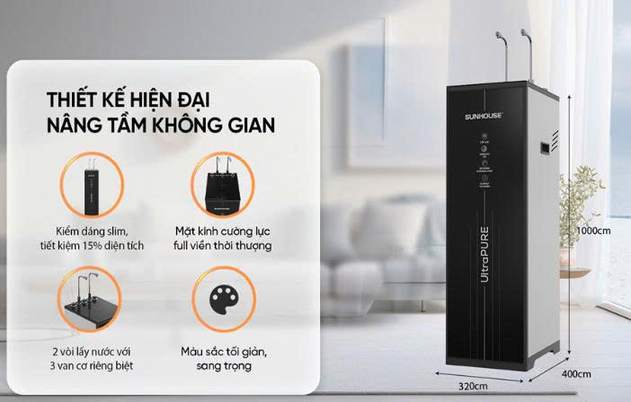 - Hệ thống lọc 11 cấp mạnh mẽ cùng 3 chế độ nước tiện lợi