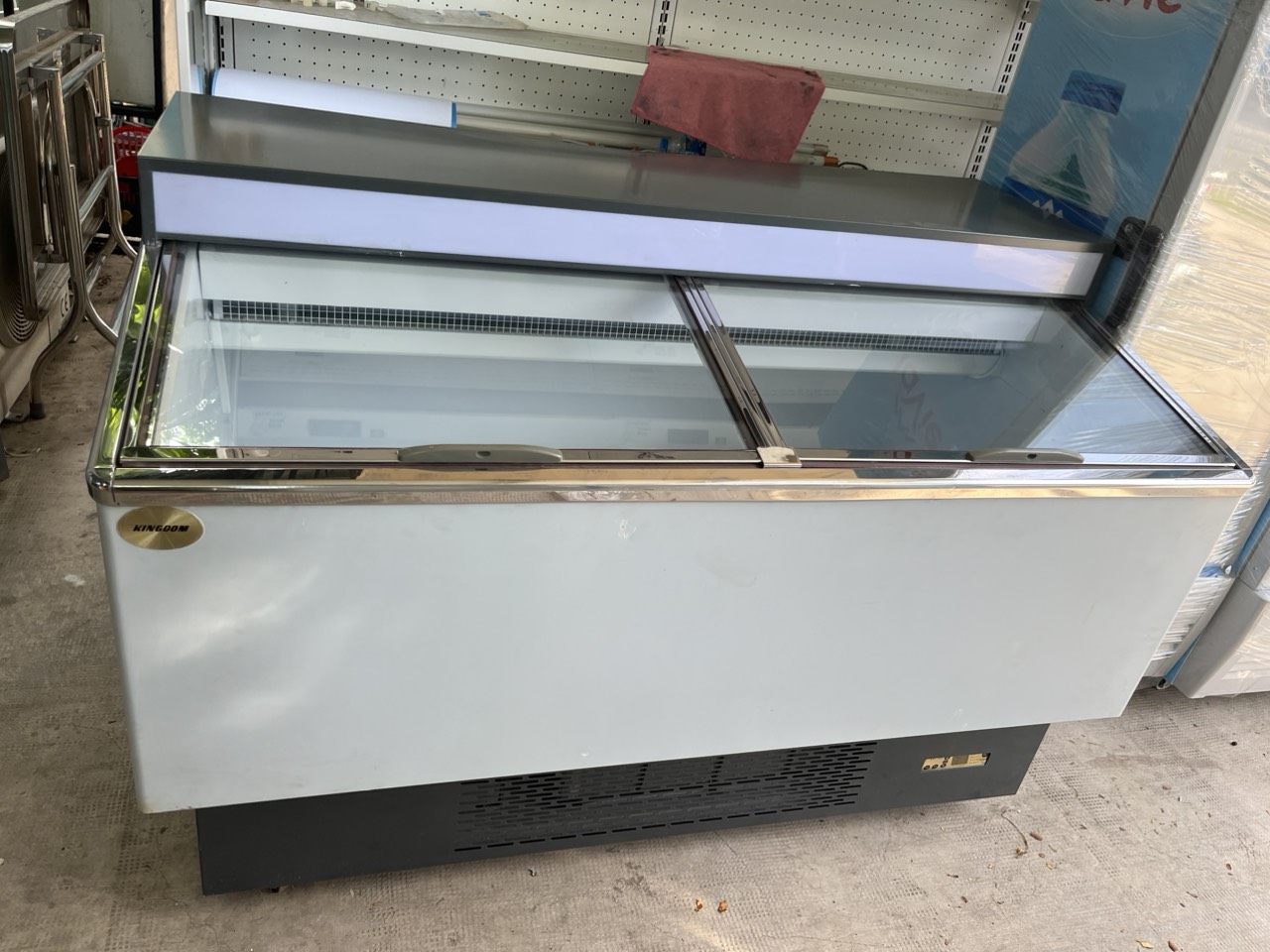 Tủ đông cánh kính lùa dài 1,5m KINGDOM, mới 88%, mát đá nhanh, chạy êm, tiện dụng trưng bày.
