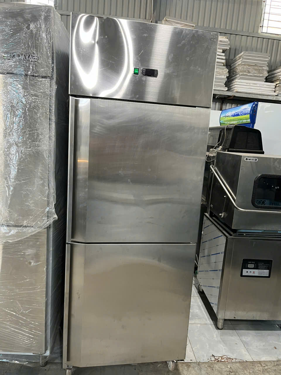 Tủ đông đứng inoxx 505 lít, mới 88%, ngăn rộng, tủ quạt gió không bám tuyết, chảy nước, mát lạnh nhanh, tiện dụng cho quán ăn, nhà hàng, khách sạn..